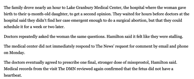 This is fucking madness. In Texas, “Pro-life” now means women being forced to exhume their dead, wanted baby out of their own body with a pill and the doctors only intervene if the massive blood they lose turns brown. dallasnews.com/news/public-he…