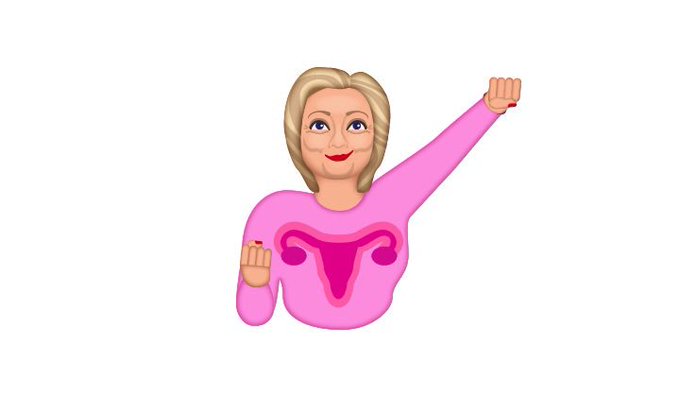 Yes, that’s right. Featured on cartoon Hillary Clinton’s shirt is a bright pink uterus and ovaries.